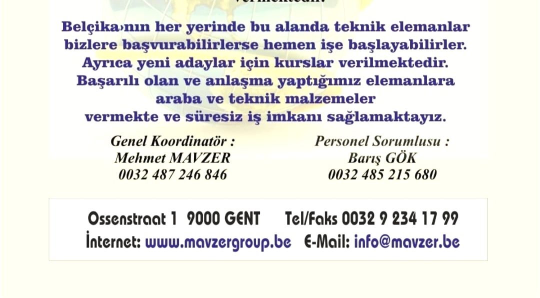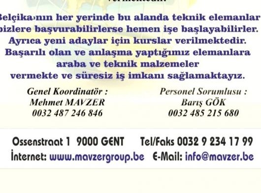 Belçika genelinde eleman arıyor
