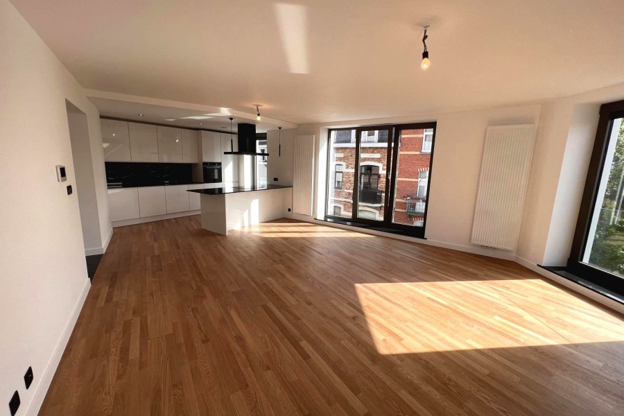 OKimmo Bruxelles vous propose cet magnifique appartement 2 chambres , Situé au 2éme étage d’un immeuble entièrement rénové avec ascenseur, d’une surface habitable de 109 m², chaudière individuelle au gaz, espace de vie très agréable et lumineux avec cuisines équipées, sanitaires, matériaux de haute de gamme et finition de prestige. Proximité de transport en commun, l’école et commerces. PEB : B Vente sous régime de TVA 21%. Pour les visites: 0484 / 527 427 ou info@okimmo.be Prix : 348 990 €
